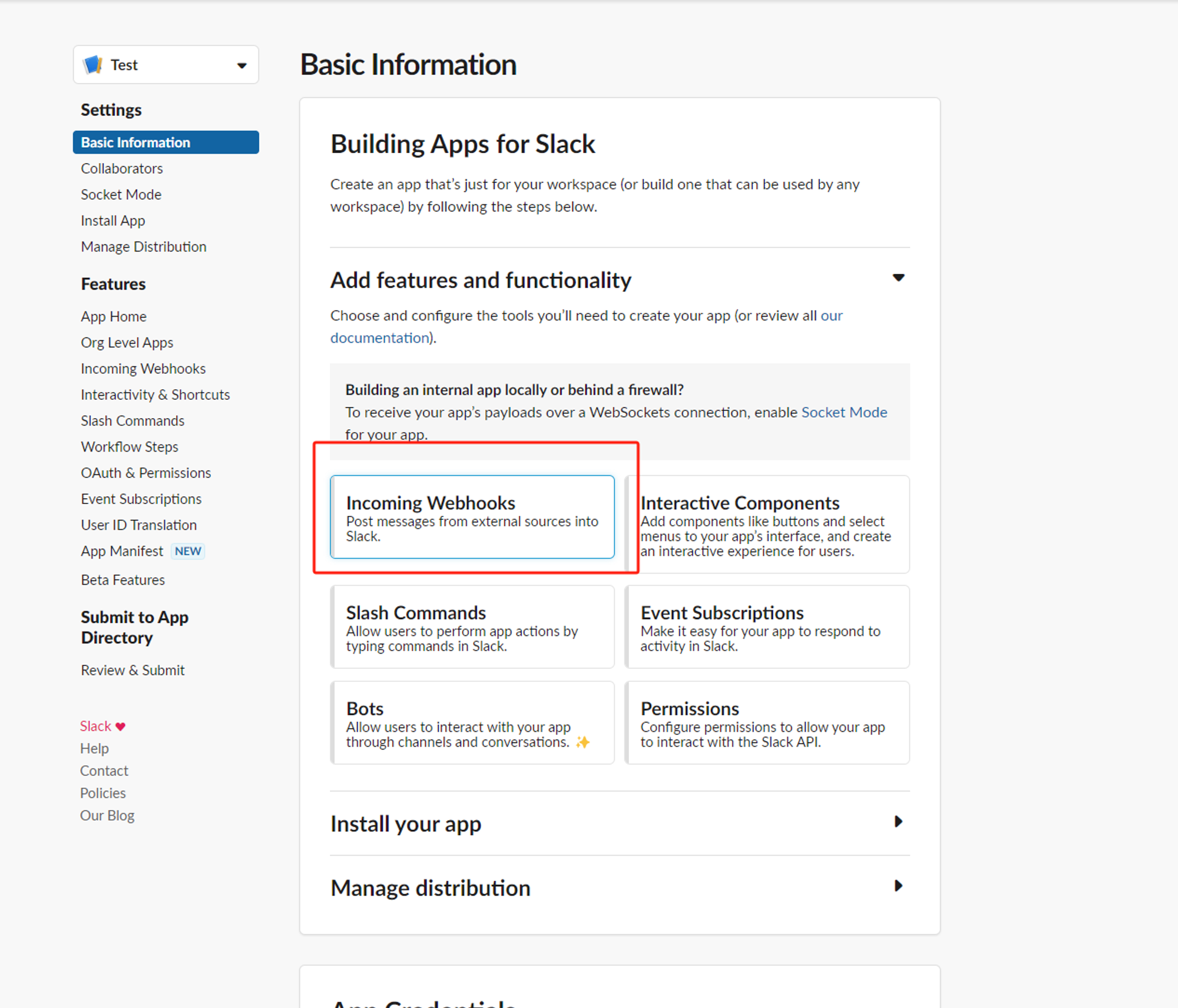 - 创建slack app